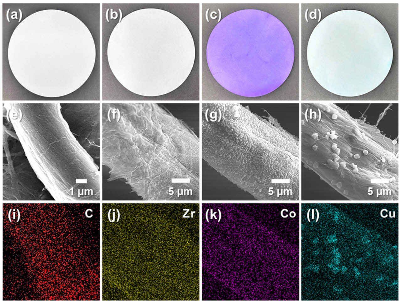 MOFs/CF 제조를 위한 MOFs의 합성 재료로 사용된 zirconyl chloride octahydrate (ZrOCl2·8H2O), fumaric acid (HOOCCH=CHCOOH), cobalt(II) nitrate hexahydrate (Co(NO3)2·6H2O), 2-methylimidazole (C4H6N2), copper(II) nitrate trihydrate (Cu(NO3)2·3H2O), 그리고 benzene-1,3,5-tricarboxylic acid (BTC, C6H3(CO2H)3)는 Sigma-Aldrich (MO, USA)에서 구매하였다. Methyl alcohol (99.5%), formic acid (99.0%)는 Samchun Chemical (Seoul, Korea)에서 구매하였다. CF는 Advantec (Tokyo, Japan)에서 구매하였다.