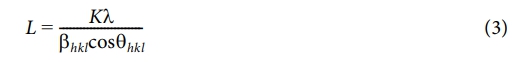 (002)면에 대해서는 K = 0.89, (100)면에 대해서는 K = 1.84을 사용하였다. 여기서 λ는 X선의 파장, β는 각 면에서 측정된 반치폭(Full Width at Half Maximum, FWHM), θ는 회절각이다[17].