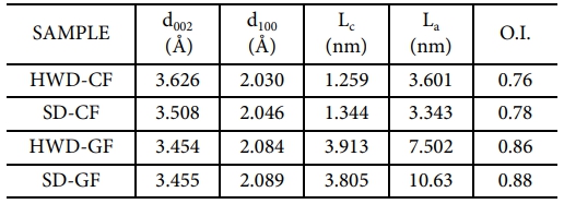 Table 1 Structure parameters of carbon and graphitized fibers (HWD-CF, SD-CF, HWD-GF, and SD-GF) |