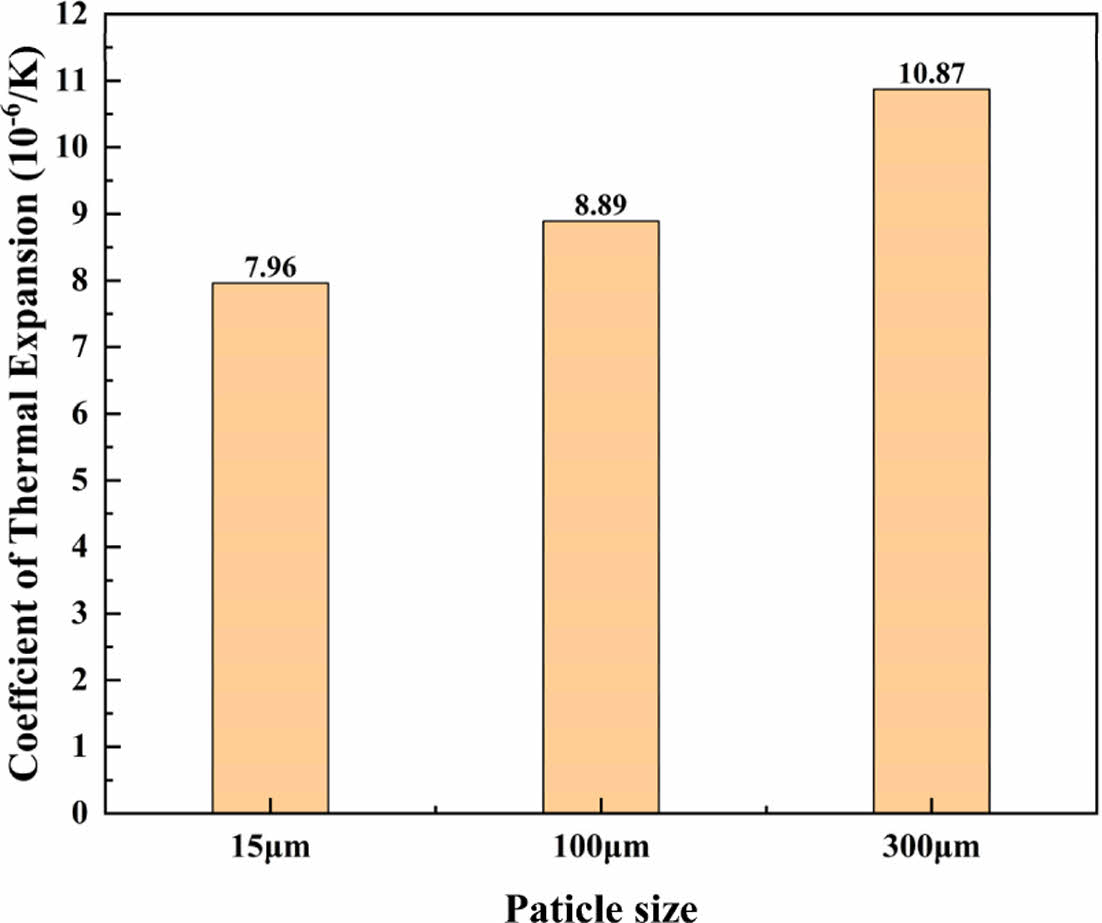 Fig. 7 Coefficient of thermal expansion of cBN/Al1050 composites with different particle size |