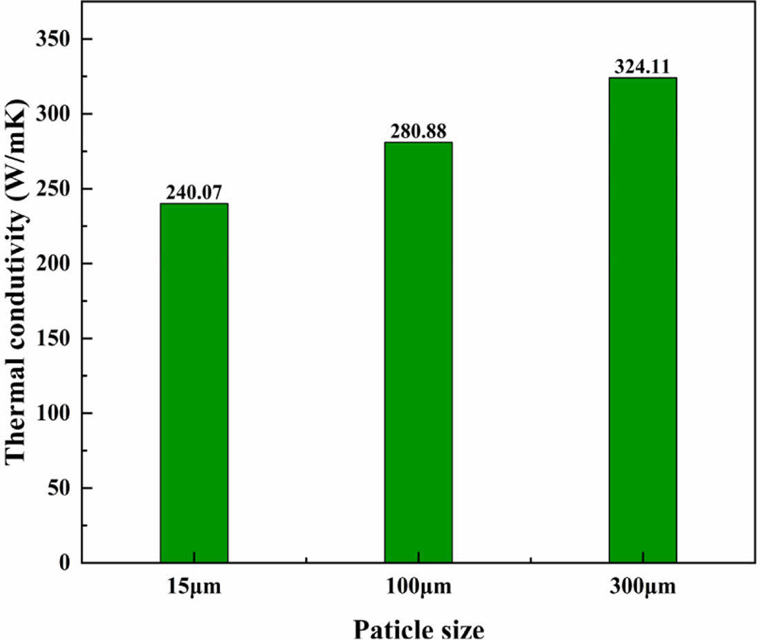 Fig. 8 Thermal conductivities of cBN/Al1050 composites with different particle size |