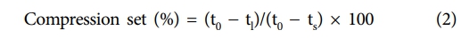 where t0 represents the initial thickness, tl represents the thickness after the test, and ts represents the compressed thickness.