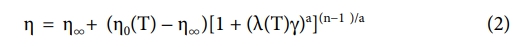 둘째, Carreau–Yasuda 방정식은 식 (2)와 같이 주어진다.