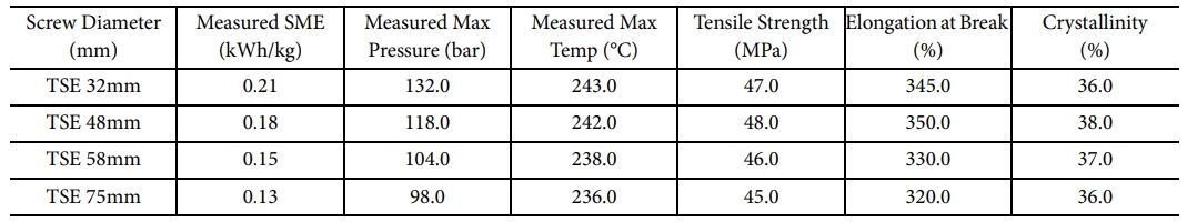 Table 5 Comparison of Key Process Parameters by Screw Diameter Based on Simulation |