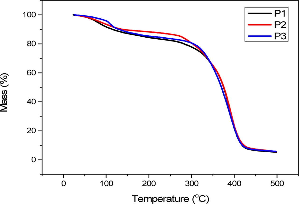 Fig. 5 Thermogravimetric Analysis (TGA) Curves of Polymers (P1-P3) |