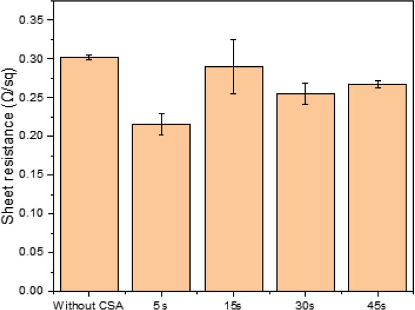 Fig. 5 Sheet resistance result of pristine SWCNT and CSA-doped SWCNT |