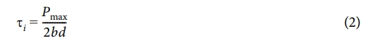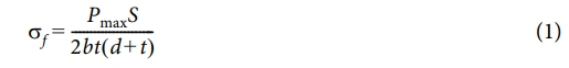 where Pmax is the experimentally measured peak load, S is the support span, b is the specimen width, t is the face-sheet thickness, and d is the core thickness.